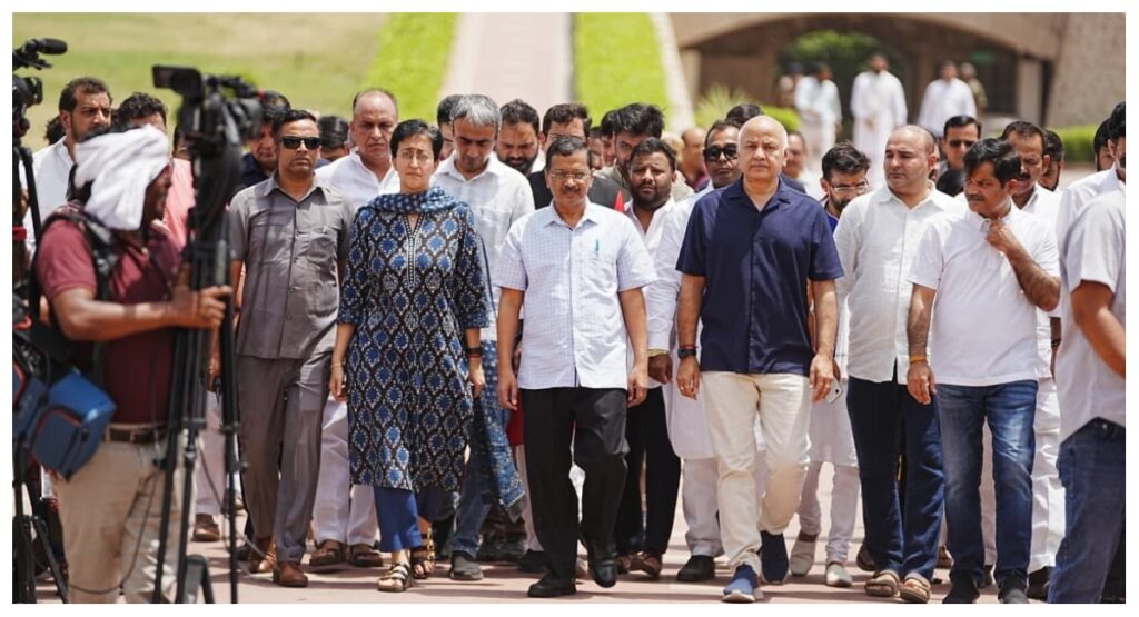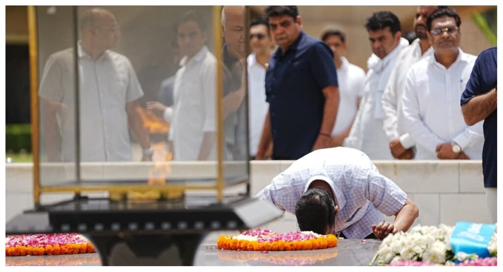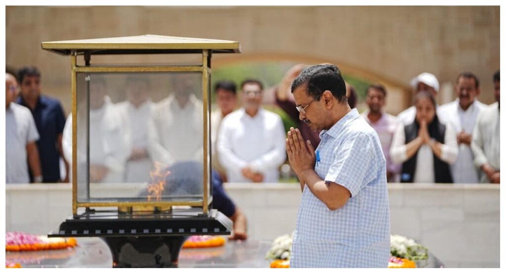 केजरीवाल और मनीष सिसोदिया गांधी समाधि पर जाकर हुए नतमस्तक, सत्याग्रह के मार्ग पर डटे रहने की मांगी शक्ति