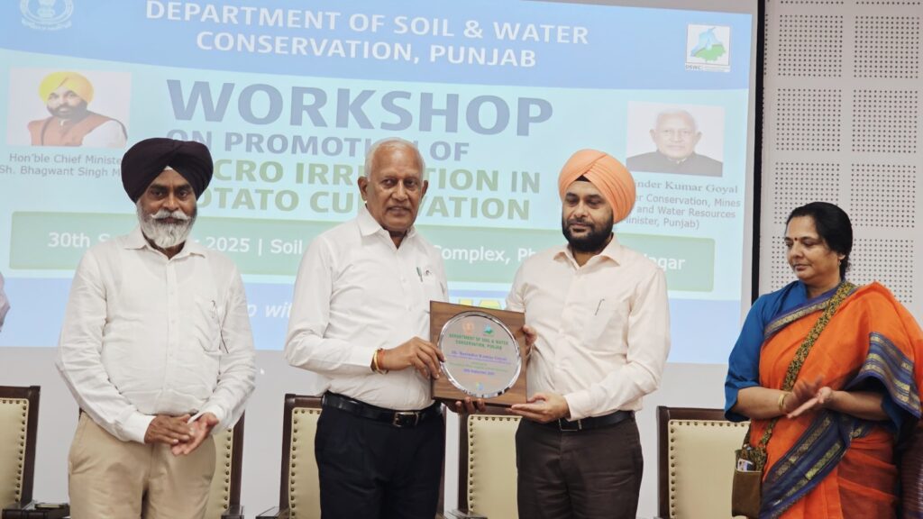 भूमि संरक्षण परिसर, फेज 6, मोहाली में आलू की खेती में सूक्ष्म सिंचाई को बढ़ावा देने पर एक दिवसीय कार्यशाला को संबोधित करते हुए, मंत्री ने कहा कि सूक्ष्म सिंचाई – जिसमें ड्रिप और स्प्रिंकलर प्रणालियाँ शामिल हैं – न केवल पानी का विवेकपूर्ण उपयोग सुनिश्चित करती है, बल्कि फसल की जड़ों तक सीधे उर्वरकों और कीटनाशकों के कुशल उपयोग को भी संभव बनाती है. उन्होंने कहा, “इन प्रणालियों को अपनाने से किसानों को 50% तक पानी की बचत होती है और प्रति एकड़ उपज और उपज की गुणवत्ता में भी सुधार होता है.”