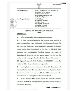 हाईकोर्ट ने यह भी आदेश दिया कि चयनित उम्मीदवारों और मेरिट सूची में शामिल अभ्यर्थियों को भी इस मामले में पक्षकार बनाया जाए, ताकि अंतिम निर्णय सभी पर समान रूप से लागू हो सके. इसके साथ ही राज्य सरकार और RPSC को भर्ती प्रक्रिया आगे न बढ़ाने के निर्देश दिए गए हैं.