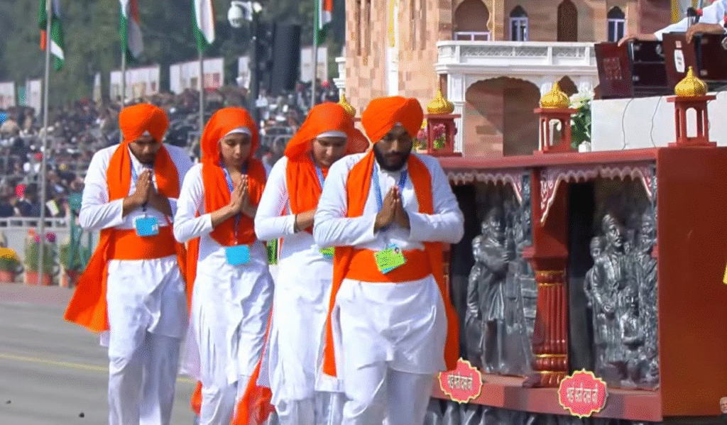 New Delhi : गणतंत्र दिवस के अवसर पर कर्तव्य पथ पर पंजाब की झांकी के माध्यम से साहिब गुरु तेग़ बहादुर साहिब जी की अद्वितीय शहादत को प्रस्तुत किया गया, जिसे सभी ने श्रद्धांजलि अर्पित की। इस झांकी ने सबका ध्यान आकर्षित करते हुए पूरे देश को मानवता, न्याय और धर्म की रक्षा का संदेश दिया।