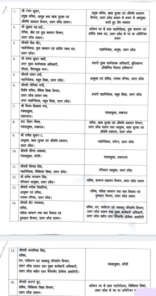 ब्यूरोक्रेसी में बड़ा बदलाव: योगी सरकार ने 14 सीनियर IAS अधिकारियों का किया ट्रांसफर, कई को मिले अहम पद