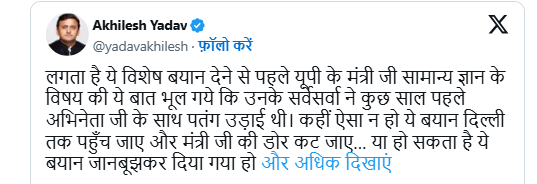 अखिलेश यादव ने आगे कहा, “कहीं ऐसा न हो ये बयान दिल्ली तक पहुंच जाए और मंत्री जी की डोर ही कट जाए. या हो सकता है ये बयान जानबूझकर दिया गया हो क्योंकि मंत्री जी को पता चल गया हो कि उनकी छंटनी भी तय है.”